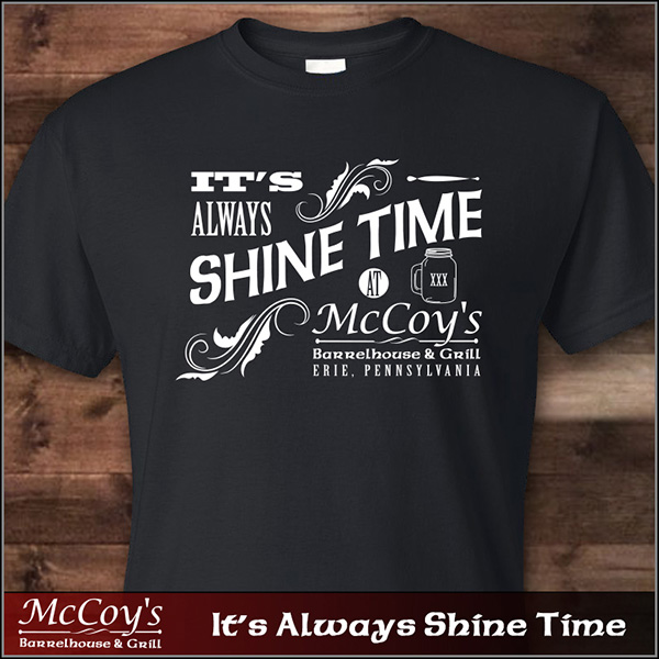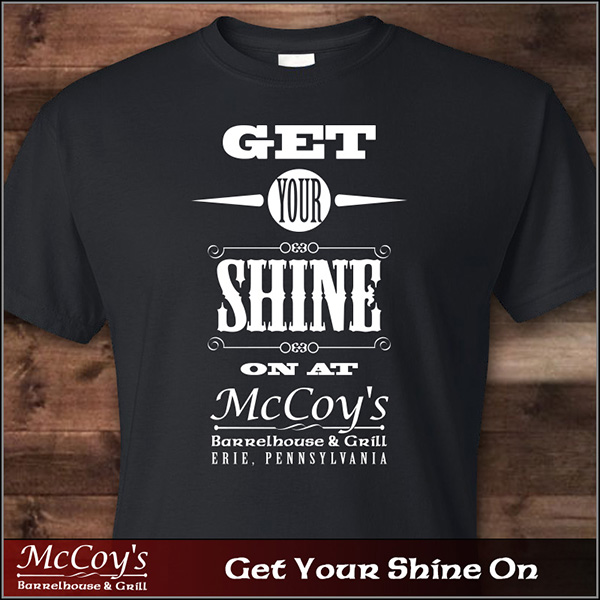Get your shine on at McCoy's Barrelhouse & Grill with one of our fun T-shirts. Our American Apparel driRelease T is an 85% polyester / 15% cotton blend that is perfect for layering or wearing on it's own. Two great designs to choose from. Take your pick and enjoy everything you love about the fit, feel and durability of a vintage T-shirt.
